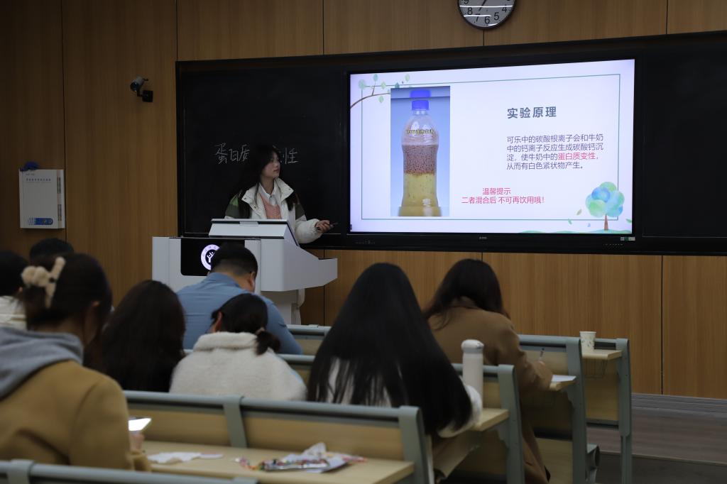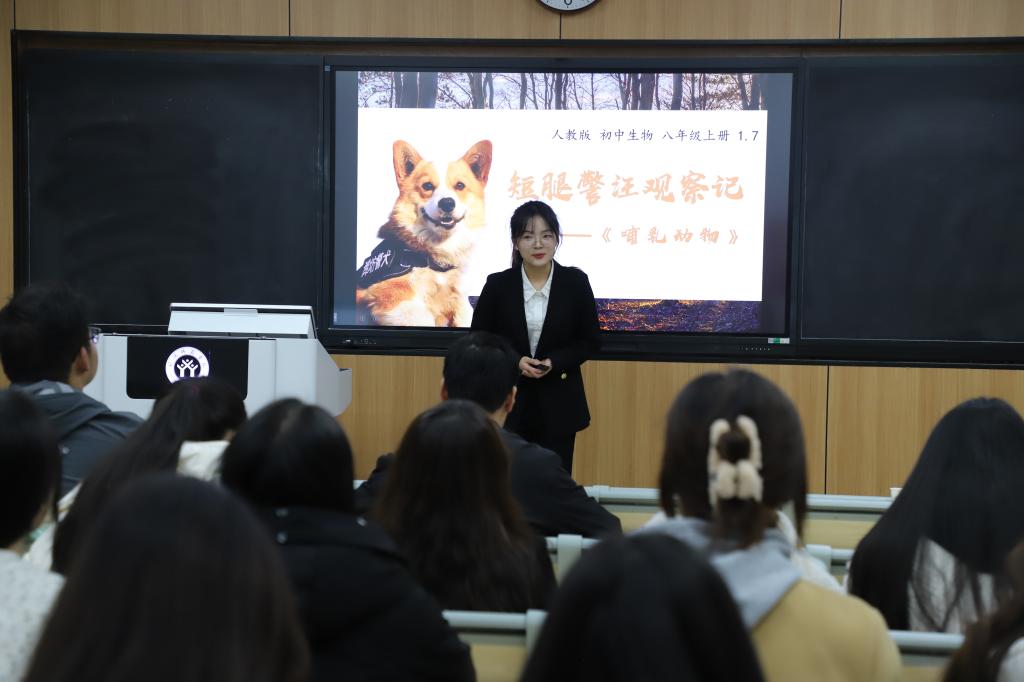 同伴引领活动邀请了2024年河南省师范生教学技能竞赛一等奖的王冰瑶分享她的教学技能参赛和示范微型课经验。活动伊始,王冰瑶学姐展示了一节优质课程——关于哺乳动物的教学,随后她详细分享了参加省教学技能比赛的宝贵经验。她的精彩演示和经验分享让第四工作坊的全体师范生受益匪浅。