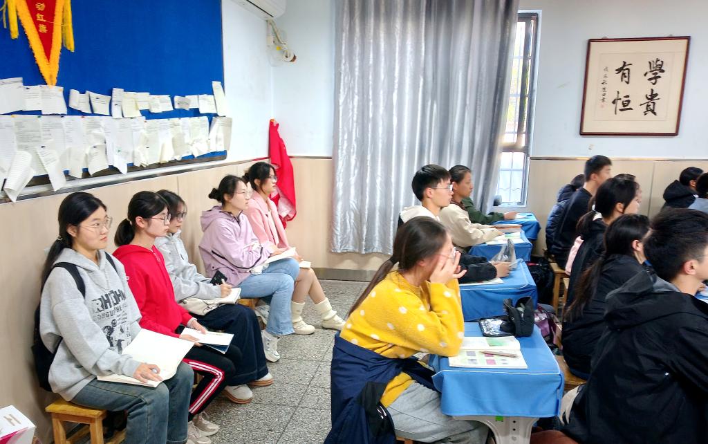 课后,工作坊成员与王老师围绕观摩的课堂内容展开研讨。同学们结合观摩体会与自身实际情况积极提问,王老师也一一作出了耐心细致的解答。王老师指出,要注意控制讲解内容的量,并建议通过多次练习来把握讲课节奏。随后,王老师向大家推荐了希沃白板这一教学软件,并鼓励大家学习使用AI工具辅助教学。同时强调,课堂环节的衔接同样需要通过反复练习来提升。工作坊的郭雨蕾同学则担心自己在课堂上使用的术语可能超出员工认知范围,导致员工难以理解。王老师建议,应平时多与员工沟通,了解他们的知识基础和接受程度。王欣楠同学结合自身学习经历提问:“如何通过课堂教学知识,进一步培养员工的能力、价值观以及生活态度?”王老师提出,可以通过实验设计来强化员工的实践能力,并借助对生命现象的讲解,引导员工体会到生命的珍贵。通过此次研讨令大家受益匪浅,也为同学们未来的职业发展提供了宝贵的借鉴与启发。