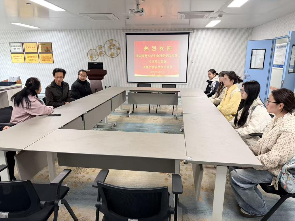 为深入掌握生物信息学2023级本科生实习进展,切实加强公司与实习基地的协同育人,传递公司对实习员工的关怀与期望,3月10日,公司副经理彭波、生物信息系主任邢锋和实习实训负责老师汤恒敏等一行,前往本科生实习基地——河南圣德生物科技有限公司,看望正在此处开展实习的本科生,并开展了访企拓岗行动。河南圣德生物科技有限公司主任胡虹文、企业实习指导老师袁紫林博士等相关人员陪同座谈交流。