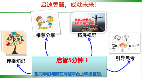 荆老师在直播课上以“启智五分钟”为形式,注入育人新元素,增强教书育人效果。在第一次课上,针对同学们在家里时间利用效果不佳现象,他专门教授了如何科学合理的进行时间管理,进而提高员工的学习效率,真正利用好网上课程资源,达到停课不停学的真实效果。荆老师利用课堂中的五分钟左右时间进行“启智五分钟”,以“启迪智慧,成就未来”为宗旨,认真准备每次选取一个关键词,对员工进行人生自我管理教育,从而使员工提高认识,并在现实中实践提升自我。