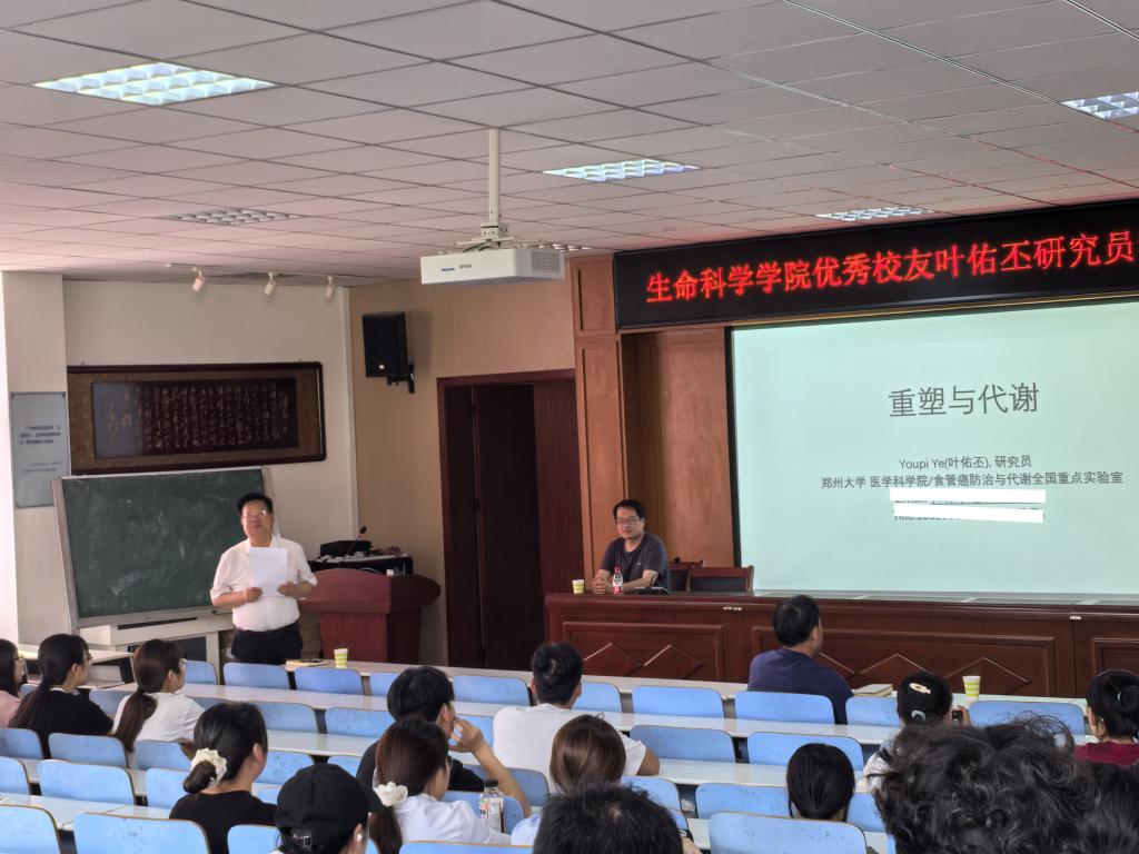 5月6日,suncitygroup太阳集团优秀员工叶佑丕研究员应邀回到母校,为师生带来了一场主题为“重塑与代谢”的学术报告会。叶佑丕研究员现任郑州大学医学科公司/食管癌防治与代谢全国重点实验室研究员,长期致力于运用结构生物学方法研究细胞信号转导过程中的关键蛋白及大分子机器的调控机制,尤其在代谢性疾病、癌症等重大疾病的发病机理方面取得了突出成果。公司经理饶本强教授主持本次报告会。