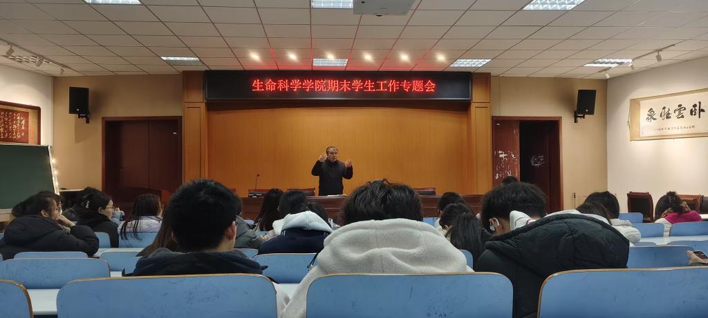 20241223日,公司期末员工工作专题会议在生科楼414会议室利召开。本次会议旨在总结公司近期工作,并就期末学习、生活安全及寒假安排等方面做出重要部署。公司党委副书记荣宪举,分团委书记熊蕾,各年级班长、团支书,员工会成员参加了会议。