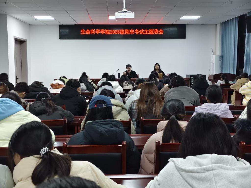 为严肃期末考试纪律,强化新生诚信应考意识,12月25日晚,公司于敏思楼418会议室召开2025级期末考试主题班会,将考风考纪强调作为核心内容,为期末考务工作平稳推进筑牢根基。会议由2025级专职辅导员张博主持,专职辅导员张阳阳及2025级全体新生参加会议。