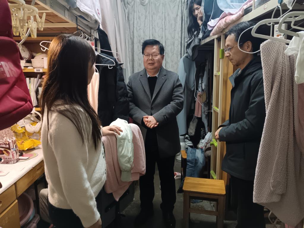 走访过程中,领导老师们仔细查看同学们的宿舍环境及返校报到情况,询问大家的假期生活、新学期学习规划和宿舍生活状态,与大家亲切交流、暖心沟通,细致了解大家的思想动态与实际需求,嘱咐同学们注意人身、消防、财产安全及防诈骗等,并及时为同学们排忧解难,叮嘱同学们尽快调整生活作息,以饱满状态投入新学期学习生活。