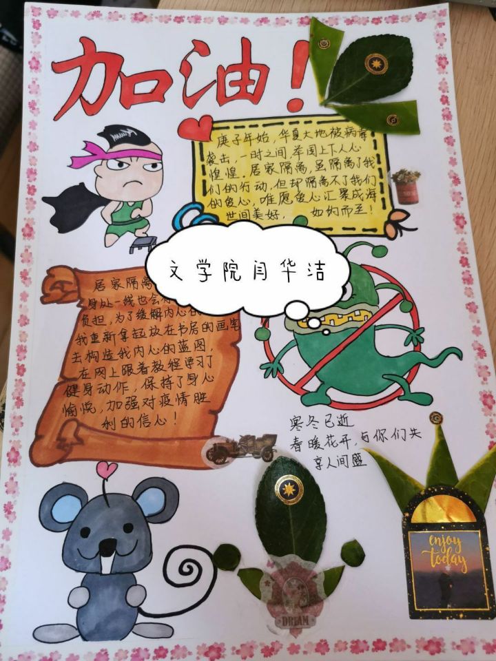 此次活动鼓励参赛选手走出屋门,拥抱自然,通过植物拓印、标本装饰的艺术创作形式来记录表达曾在疫情期间遇到的烦恼压力以及调整心态的有效方法。参赛选手兴致盎然,创作出一幅幅精致唯美、内涵丰富的艺术作品,令人赞不绝口。通过激烈的评选角逐,文公司闫华洁、计算机马佳雯、生科张林芳、传媒王雅灏同学荣获一等奖,历史王晨、生科王静、生科柳洁、美院曹瑞琳、英语张晨、文公司林静文荣获二等奖。