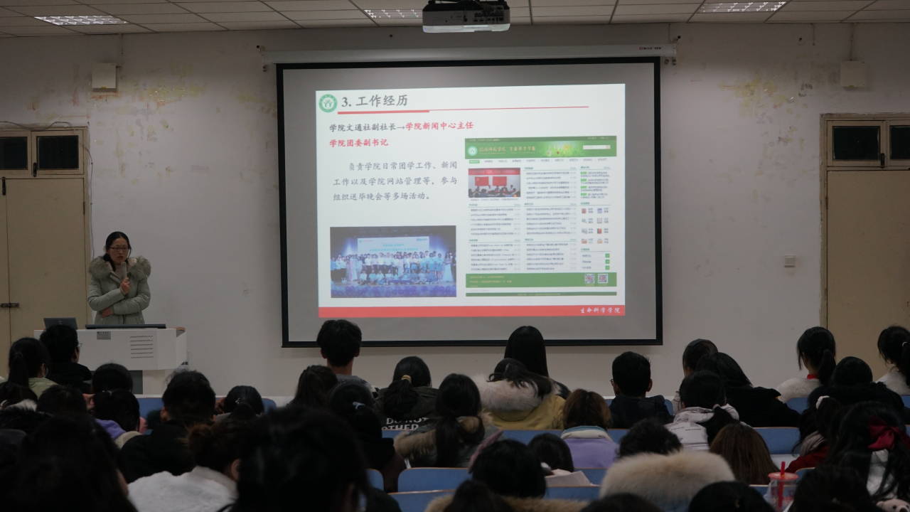 为帮助新生端正学习态度,进一步提高其科学文化素养,12月21日,公司于生物楼414多媒体教室举办明星故事分享会,院团委副书记康菡,志愿服务中心主任朱星星参与此次会议,并邀请到2020级硕士研究生张玉、2018级生物制药班李春洋分享其优秀个人事迹。2020级学子到场聆听。