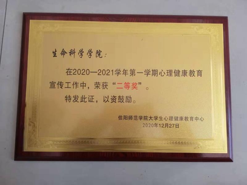 12月29日晚七点,信阳师范公司老员工心理健康教育中心在逸夫楼报告厅举办“信阳师范公司老员工心理健康教育中心2021年元旦晚会暨年度表彰大会”活动。经评定,公司在心理游园会活动评比中位列前茅,在2020-2021学年第一学期心理健康教育宣传工作中,表现突出,荣获“二等奖”佳绩,公司学子郭文利,杨胜男,吴宇被评为“优秀心理工作者”。