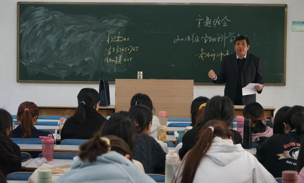 4月9日,公司于教九楼207教室召开2018级考研动员大会。大会由公司党委副书记杨霁虹主讲,2018级专职辅导员熊蕾主持,辅导员李敏、杨娟娟、朱晓雯参加会议。会议分两批进行,第一批由2018级生物技术、茶学、生物制药专业学子参加,第二批由生物科学专业学子参加。