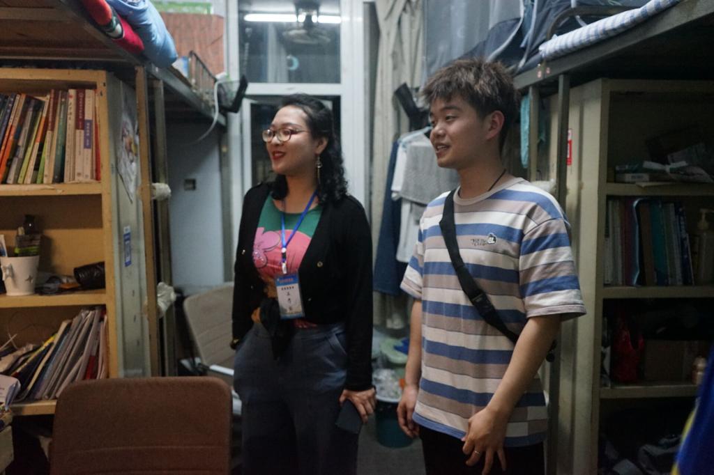 查寝工作分为女生宿舍与男生宿舍两部分进行,熊蕾与部分员工干部共同前往4号楼与13号楼开展工作。她首先询问各宿舍人员真实返校情况,了解众学子考研院校与考研方向,为学子备考提供合理可行的相关建议。另一方面,熊蕾密切关注各宿舍有无违规电器使用及阳台杂物摆放、堆叠。她指出,学子应该整理好自身内务,在日常学习生活中时刻保持宿舍卫生。