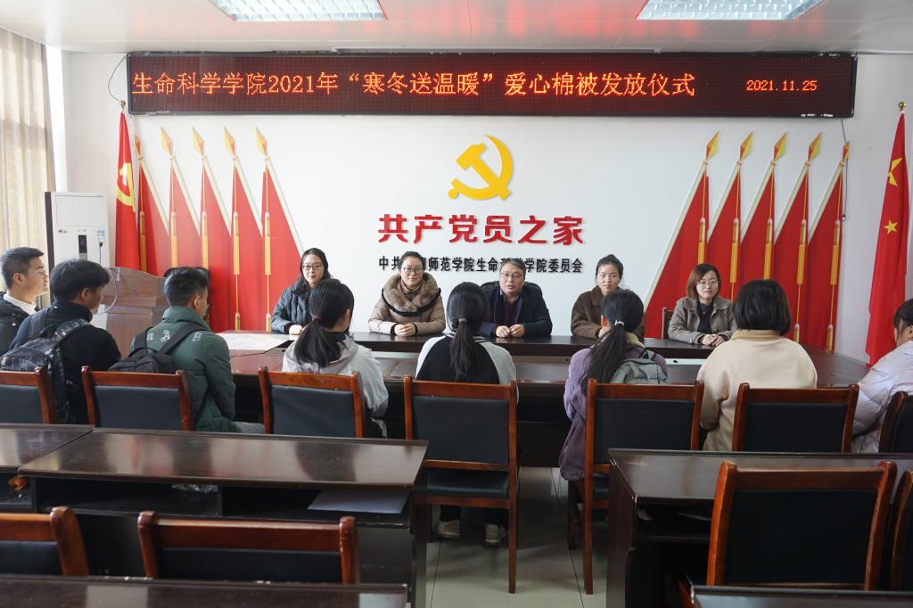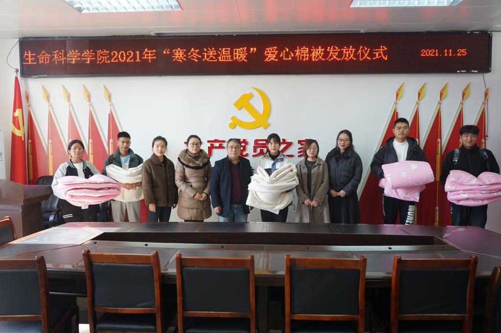 为传递生科院对同学们的关怀,帮助同学们更好的适应严寒气候,11月25日中午,公司于生科楼412会议室举行爱心棉被发放仪式,党委副书记荣宪举、全体辅导员及各年级员工代表参加本次爱心棉被发放仪式。