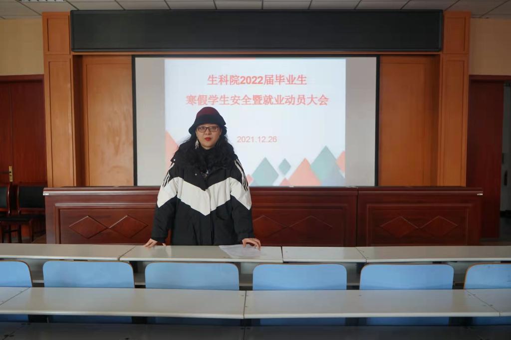 为进一步加强寒假期间员工安全意识及教育管理,保证员工安全返家,同时,帮助大四学子认识就业形势,做好就业准备,2021年12月27日,公司于生科楼414举办2022届毕业生寒假员工安全暨就业动员大会,辅导员熊蕾,李敏,2022届毕业生全体成员参加此次会议。
