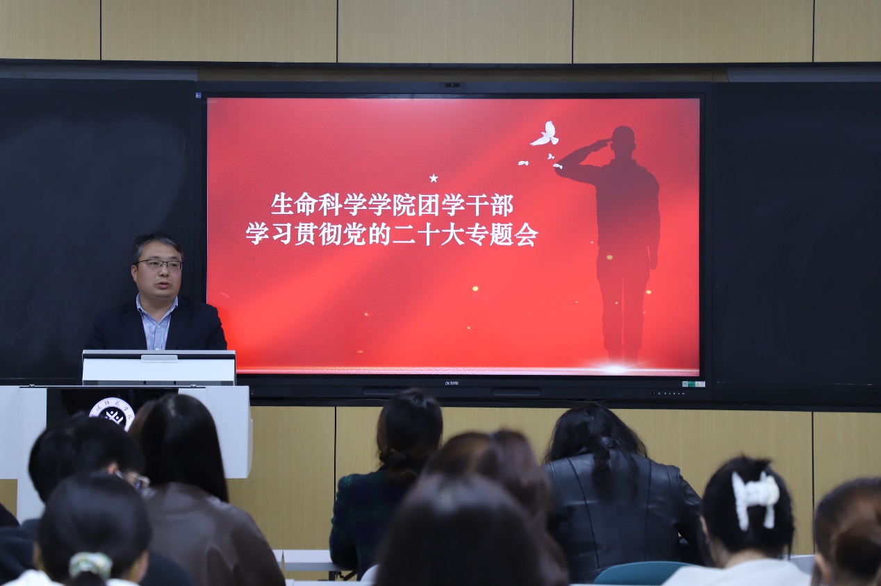 荣宪举深入解读了习近平总书记在中国共产党第二十次全国代表大会上的报告,并表示在全院员工中全面深入学习党的二十大精神,贯彻落实党的教育方针,为党育人、为国育才,落实立德树人根本任务,全面提高人才自主培养质量,培养德智体美劳全面发展的社会主义建设者和接班人。同时要全面推进课程思政建设,提高公司员工的国家安全意识,引导公司员工立志做有理想、敢担当、能吃苦、肯奋斗的新时代好青年。团学干部通过学习,结合自身学习、工作和生活实际展开热烈讨论,表示会始终牢记习近平总书记嘱托,将党的二十大精神融入日常的学习和生活中,为中华民族的伟大复兴贡献自己的力量。