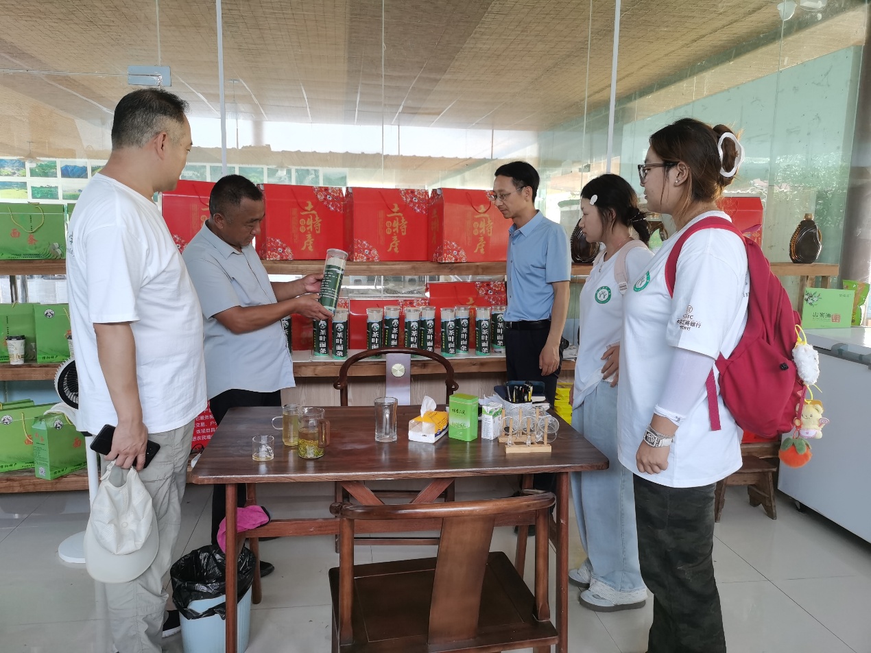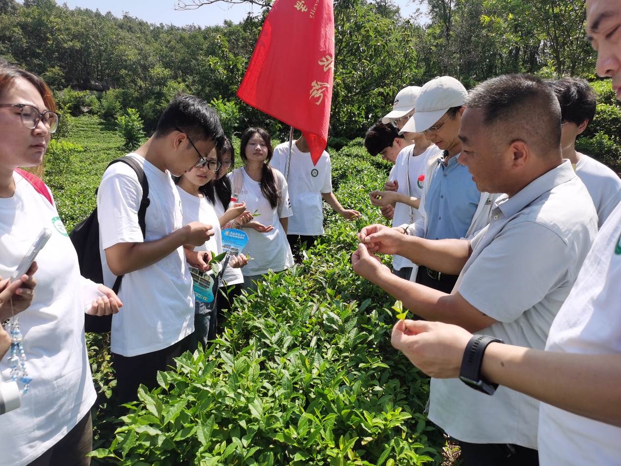 在罗山县绿色有机茶园,实践团队深入学习茶叶从生长到采摘的过程后,针对茶园当前发展痛点提出多项建议:针对茶叶品种单一、市场竞争力不足问题,建议引入特色茶树品种,丰富产品线;针对传统手工制茶效率较低的现状,提出可适度引进自动化加工设备,优化生产流程;同时,团队还通过自己的科研成果转化,提出了建设性的意见。