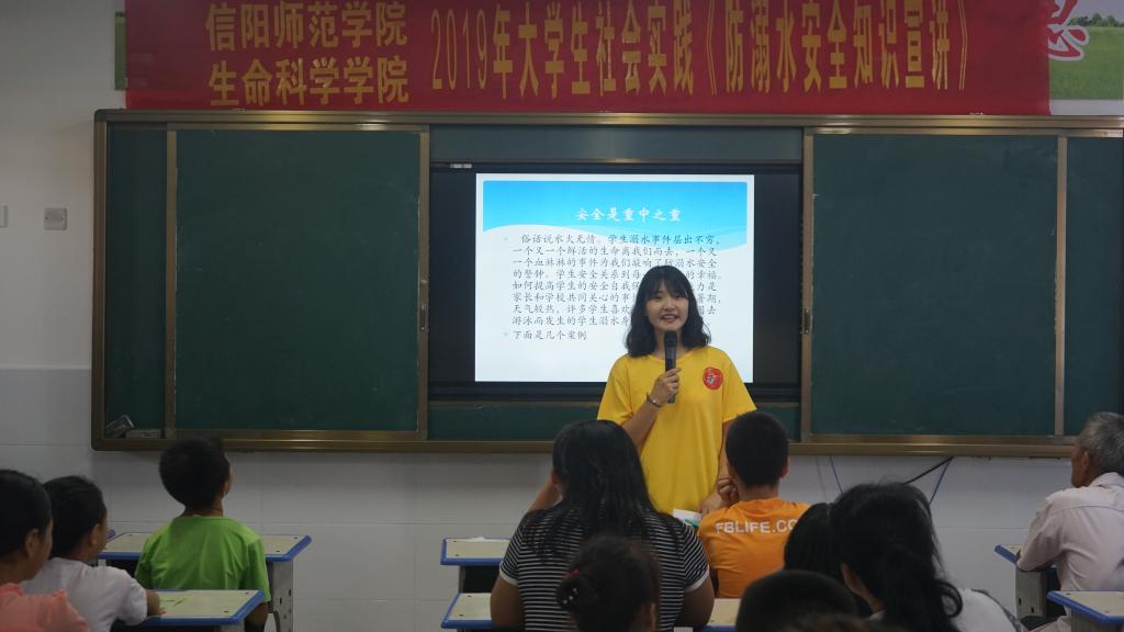 7月6日,公司2019年老员工暑期“三下乡”未成年人防溺水宣讲服务团,在公司党委副书记杨霁虹,专职组织员孙太红的带领下,来到信阳市平桥区洋河镇陆庙村小学开展未成年人防溺水宣传教育活动。