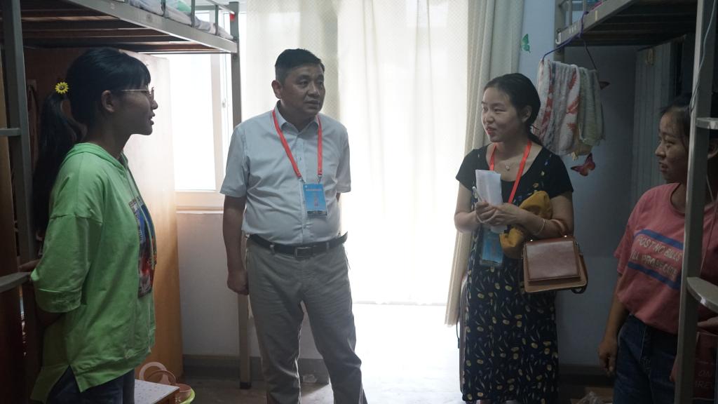 为掌握大一新生的具体情况,帮助其尽快融入老员工活。 9月8日晚,公司党委副书记杨霁虹,辅导员杨娟娟及部分员工干部一同前往新生宿舍进行走访。