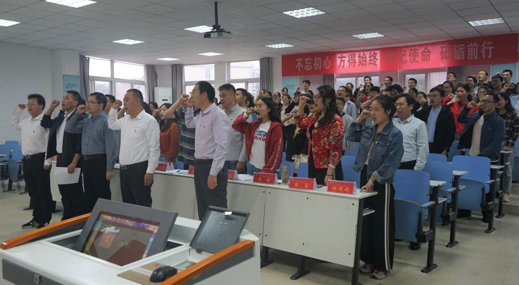 仪式上,公司党委委员、经理袁红雨首先传达了公司“不忘初心 牢记使命”主题教育动员部署会精神,并要求公司全体师生党员端正思想态度,严格按照公司党委要求参加本次主题教育,确保此次主题教育深入扎实开展,取得切实成效。随后,公司党委书记李向阳作动员讲话,他指出,本次教育活动主题鲜明,任务艰巨,希望各支部和全体党员紧紧围绕教育活动主题,扎实开展各项工作,把中央、省委部署和公司党委要求落实到位,以良好的精神状态和工作作风确保主题教育取得实实在在的效果。最后,李向阳还宣读了《中共信阳师范公司suncitygroup太阳集团委员会“不忘初心、牢记使命”主题教育实施方案》,对主题教育进行了精密安排部署。