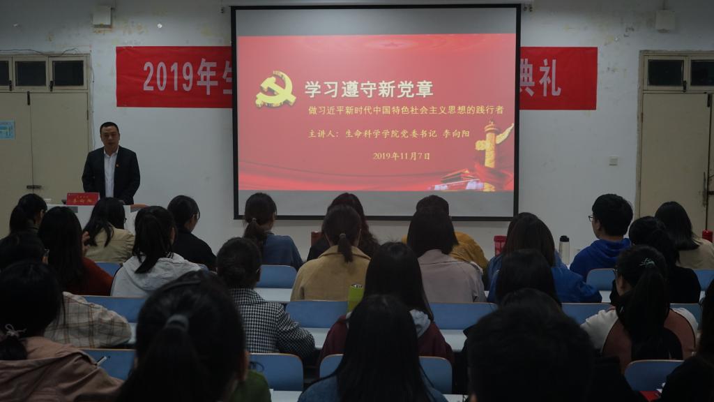 11月7日,在生物楼414多媒体教室,公司党委书记李向阳为分党校入党积极分子培训班的学员们上了一堂“学习遵守新党章”的专题党课。李向阳围绕党章的概念、党章的发展历程、十九大党章的修改以及学习和遵守党章四个方面的内容进行讲解。