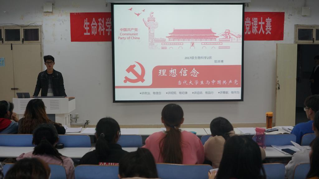 经过层层选拔,共有6位参赛选手入围决赛。比赛现场,选手们自信满满走上演讲台,他们紧扣“不忘初心,牢记使命”主题思想并结合自身经历和感悟,声情并茂地讲述心中党的故事。2017级生物科学二班的屈泽博以共产党重视青年工作为切入点,讲述了受到国家资助的贫困老员工徐本禹毕业后毅然决定去边远乡村支教的故事,呼吁青年学子应当穷且益坚、自强不息、勇担责任、回报社会,其慷慨激昂的话语赢得现场阵阵掌声。2017级生物制药班郑梦园分别从“什么是初心使命”和“如何实现初心使命”两个方面进行讲解,号召员工党员应当主动学习思想理论知识,锤炼党性修养,敢于承担时代责任,给大家带来精神的洗礼。选手们的宣讲各具特色、突显党性,给予现场听众深刻的启迪与共鸣。经过激烈角逐,评委们对各位选手的表现逐一进行打分,屈泽博凭借清晰明确的条理思路和饱含激情、感染力的阐述夺得第一。