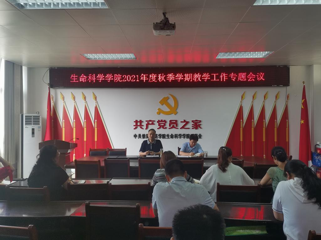 为确保疫情防控期间本科教学工作顺利开展,8月24日上午,生命科学公司党委在生物楼412会议室召开2021年度秋季学期教学工作专题会议,党委书记李刚、经理饶本强、各系主任、行政办公室主任、实验教学中心负责人、教学秘书和全体辅导员参加会议。会议由经理饶本强主持。