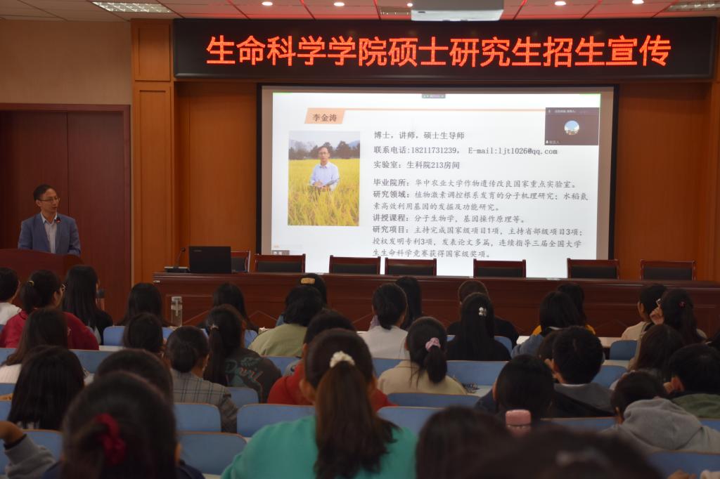 荆胜利分别从硕士学位授权点基本情况、人才培养情况和报考师院优势等方面进行了详细介绍,让同学们对公司公司产品及就业前景有了更加充分的认知,也为同学们填报志愿提供了参考。他指出,公司地处大别山保护区,生物资源丰富,利于开展生物研究。经过十几年的发展,公司学位授权点团队力量雄厚,科研成果丰硕,研究经费充足,这些为培养适应国家和地方经济与社会发展需要的研究型、应用型高层次生物学专业人才奠定坚实基础。