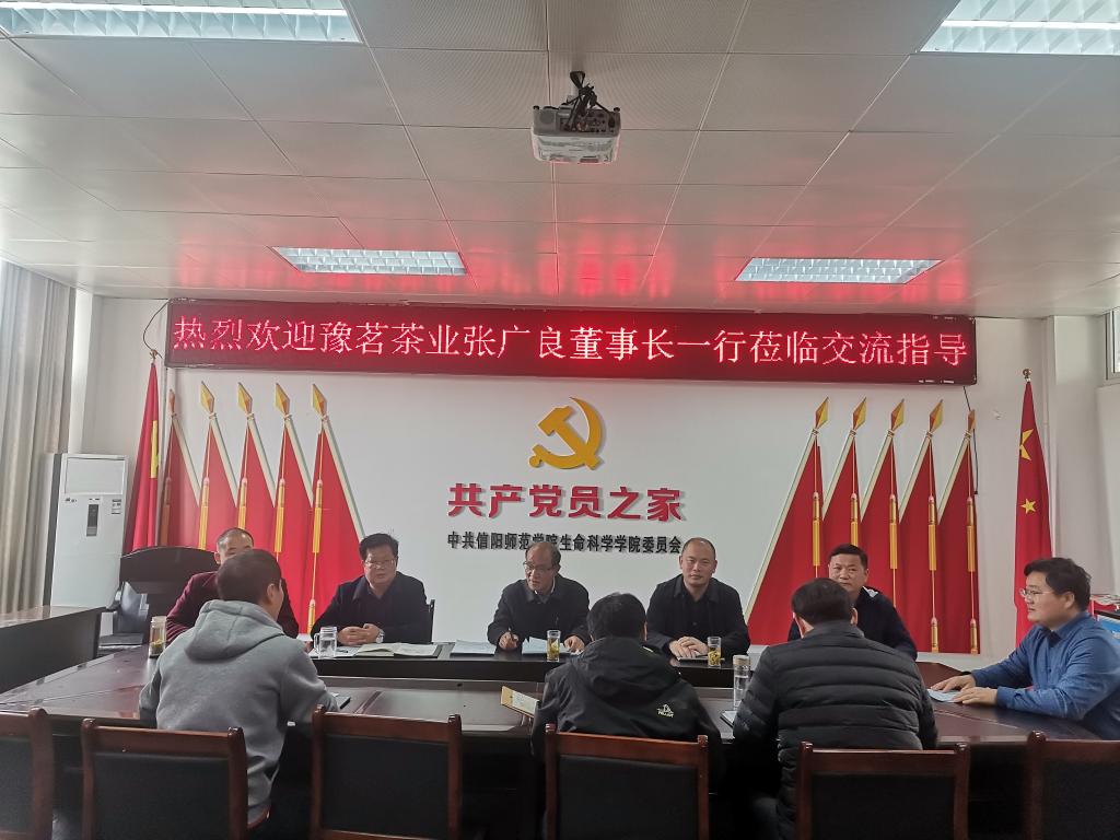 11月15日上午,信阳豫茗茶业有限公司董事长张广良、副总经理陈保明到suncitygroup太阳集团,开展产学研合作交流。suncitygroup太阳集团(茶学与食品科技公司)经理饶本强、副经理周棋赢,河南省茶树生物学重点实验室主任江昌俊以及部分专业教师参加了交流会。经理饶本强主持会议。