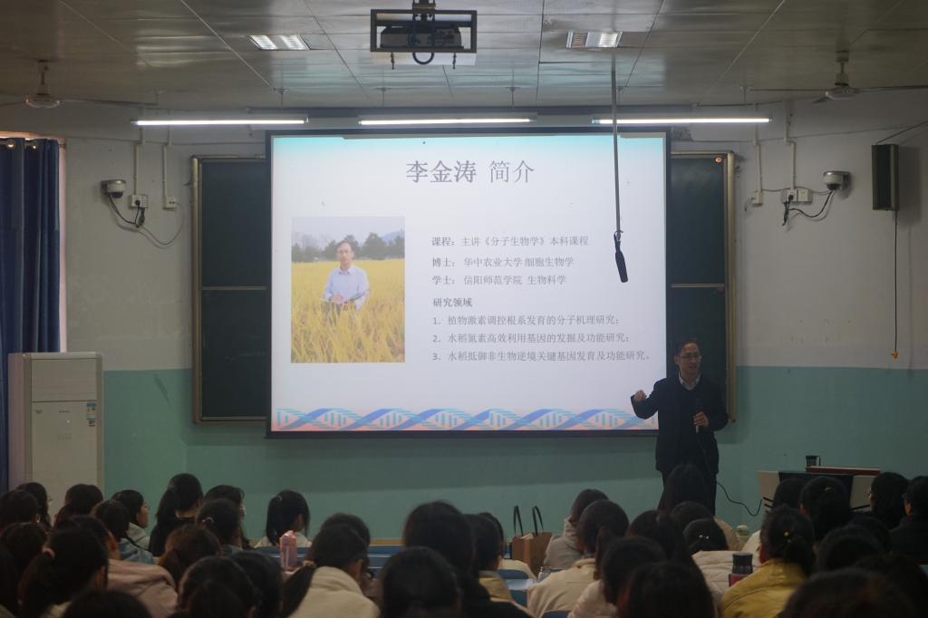 为了深入加强2021级生物科学专业员工对本专业的了解程度,帮助同学们合理安排时间、树立学业目标和制定适合的职业生涯规划方向,11月26日下午,公司于教九楼305教室举办2021级生物科学专业学业讲座,由公司李金涛博士主讲,2021级专职辅导员朱晓雯和2021级全体生物科学专业员工参加讲座。
