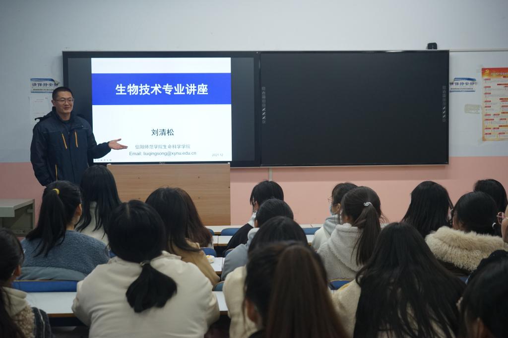 为了让同学们树立良好的学业观念,解答同学们对生物技术专业的困惑,12月3日下午,公司于教九楼107教室开展2021级生物技术专业学业讲座,由公司刘清松博士主讲,2021级专职辅导员朱晓雯和2021级全体生物技术专业员工参加讲座。