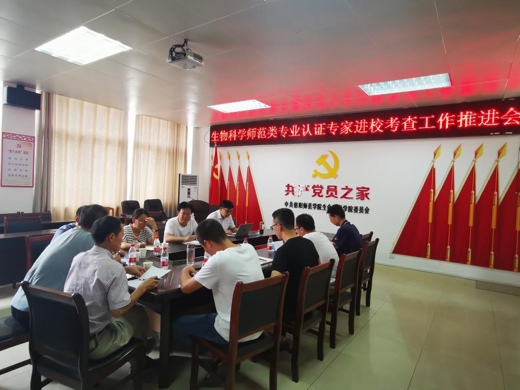 为扎实推进公司生物科学师范专业认证工作,做好生物科学师范专业认证专家进校考查阶段的各项准备, 8月17日,suncitygroup太阳集团在生物楼412会议室召开师范专业认证工作推进会。公司经理饶本强、教学副经理荆胜利及专业认证专班全体成员参加了会议,会议由荆胜利主持。