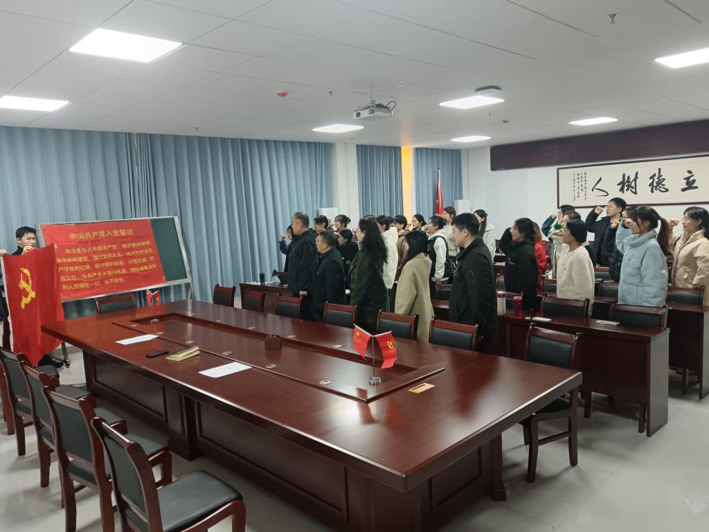 面对鲜红的中国共产党党旗,新党员们举起右拳,在领誓人的带领下庄严宣誓。“我志愿加入中国共产党,拥护党的纲领,遵守党的章程……”既表达了对党的忠诚与热爱,也彰显了新党员们为共产主义事业奋斗终身的坚定决心。鲁品言代表新党员发言,表示了要坚定理想信念,自觉用党的创新理论武装头脑,把对党的忠诚落实到贯彻党中央决策部署的行动上,体现在履职尽责的实效中,融入到日常言行里。以更加饱满的热情、更加昂扬的斗志、更加务实的作风,积极投身到中国式现代化建设的伟大征程中去,努力创造出无愧于时代、无愧于人民、无愧于共产党员光荣称号的辉煌业绩。