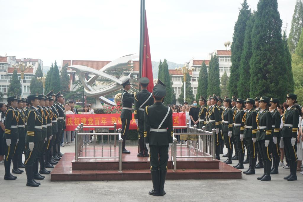 为庆祝建党百年、致敬伟大祖国。6月21日早晨,公司于行政楼前举行升旗仪式。公司党委副书记杨霁虹、团委书记熊蕾与武装干事朱晓雯出席现场,20级全体学子共同参与此次升旗仪式。